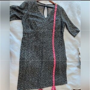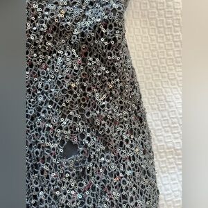 Kay Unger Grey Sparkle Jagged Edge Sheath Dress With Flaws