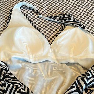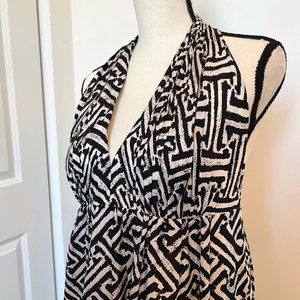 Kay Unger Halter Maxi Sundress 10 Black and White Silk