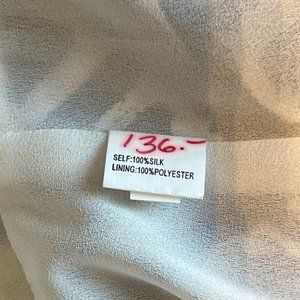 100% silk and a 100% polyester lining. Light padding in the breast.