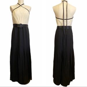Kay Unger Halter Maxi formal Dress silk Gown Black & (off) White Belted $490