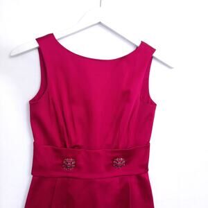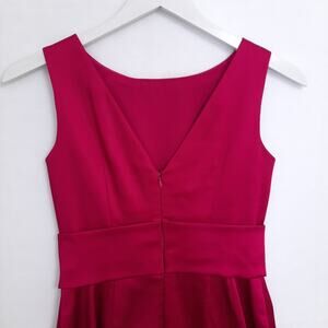 Kay Unger Hot Pink Cocktail Dress Sz 4 Satin Sleeveless Short Sheath Party Silk