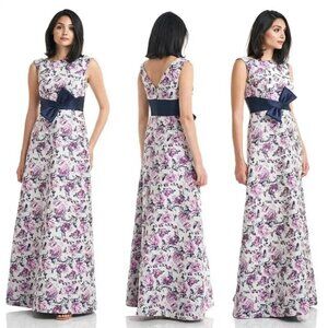 Kay Unger Magenta Navy Selena Sleeveless Bow Floral Gown