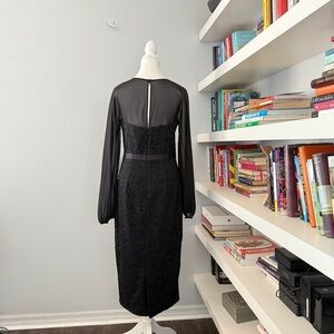 Kay Unger Marlene Tea Length Black Long Sleeve Dress NWT sz 8