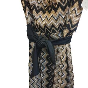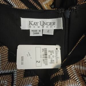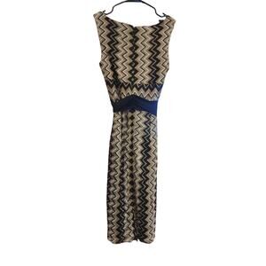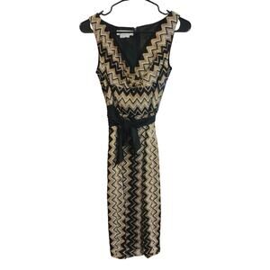Kay Unger NY Women's 2 Gold/Black Zig/Zag Midi Dress