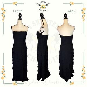 Kay Unger New York 100% Silk Strapless Tiered Maxi Dress Women's Size 8 Black