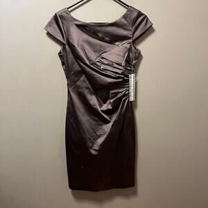 Kay Unger New York Cap-Sleeve Ruched Cocktail Dress Mink Satin Size 2 New