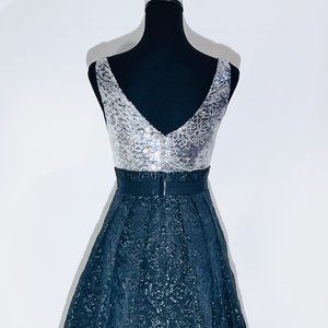 Kay Unger New York Cocktail Dress - Silver Sequin + Black