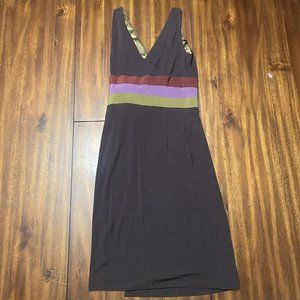 Kay Unger New York Raisin W/ Maroon, Purple & Green Stripe, Size 10. Condition is Pre-owned. Shipped with Standard Shipping.