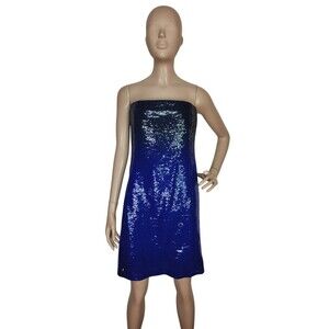 Kay Unger New York blue ombre strapless sequined dress fully lined rear zipper closure size 6, NEW