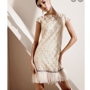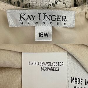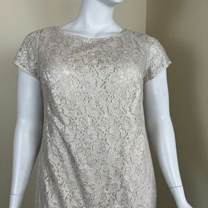 Kay Unger New York Women Size 16W Metallic Pearl Feather Floral Lace Shift Dress