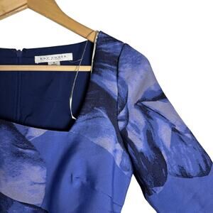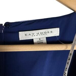 Kay Unger Octavia Blue Floral Print Organza Asymmetric Formal Cocktail Gown 6