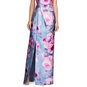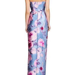 Kay Unger Pearl Blue Multi Lucienne Floral Strapless Column Gown