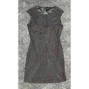 Kay Unger Phoebe Beaded Sheath Dress Women's 10 Gray Formal Wedding Guest Lined