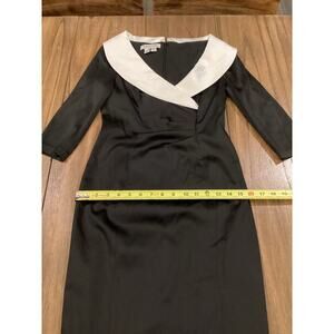 Kay Unger Portrait Black and white Satin V-Neck Shawl Collared Sheath ruche cocktail dress