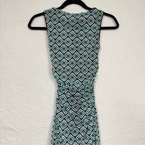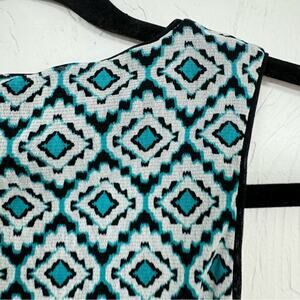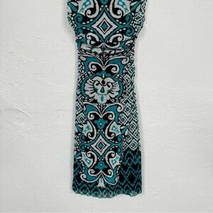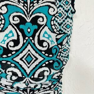 Kay Unger Printed Ruched Mini Bodycon Dress XS Teal Black & White Y2K Baddie