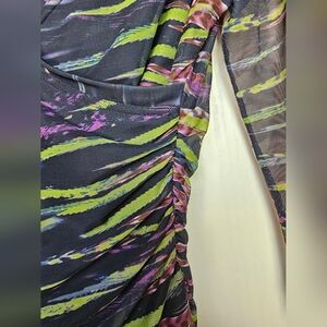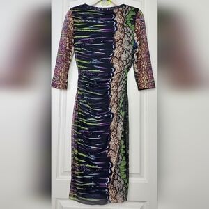 Kay Unger Ruched Wrap Mesh Ilusion Abstract Bodycon Stretchy Dress XS