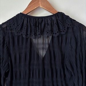 Kay Unger Ruffle Blouse 12 Perforated Black