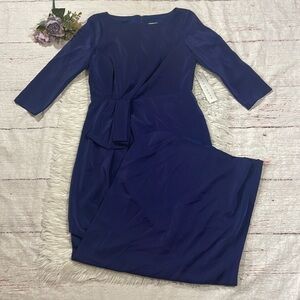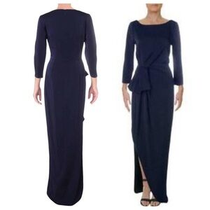 Kay Unger navy blue colored Ryder ruched detail 3/4 sleeve gown dress. This dress is new with tags