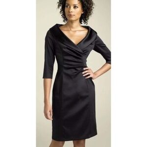 Kay Unger SZ 10 Black Satin Portrait Shawl Collar Half Sleeve Cocktail Dress EUC