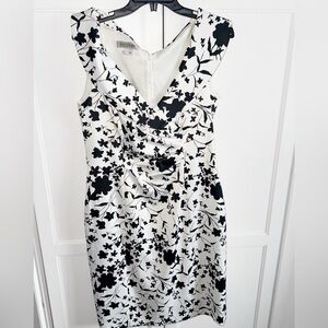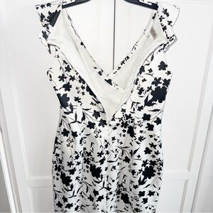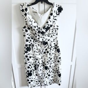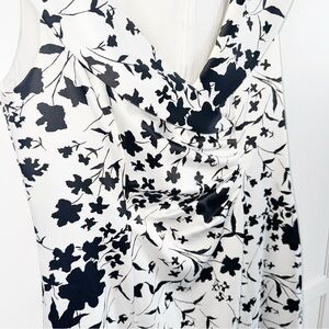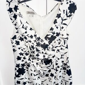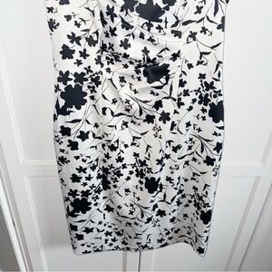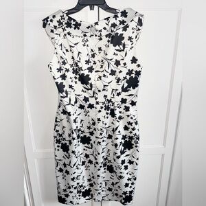 Kay Unger Satin Sleeveless Sheath Floral Black/ White Dress Portrait Collar 12