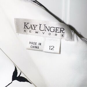 Kay Unger Satin Sleeveless Sheath Floral Black/ White Dress Portrait Collar Sz 12
