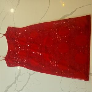 Kay Unger Sequins Polka Dot Sleeveless Slip Dress Womens Size 10 Red