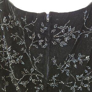 Really nice, heavier weight velvet special occasion top that has a floral beaded pattern throughout. Silk blend. It appears all of the beading is intact. Back zipper closure. Pair with a maxi skirt for a formal occasion or with a pencil skirt and blazer for work.