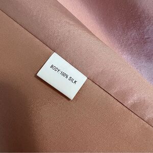 Elegant strapless cocktail dress from Kay Unger, made of 100% silk with a subtle pink/black pinstripe. Features built-in corset structure, ruched side detailing, and knee-length hem. New With Tags — never worn.