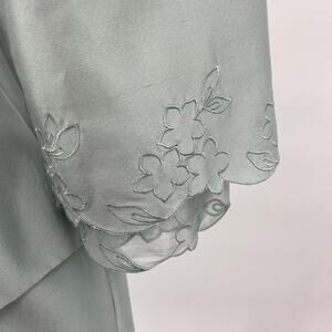 Kay Unger Silk Skirt Suit Set Embroidered Floral Semi Sheer Trim Mint Green Blue