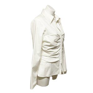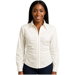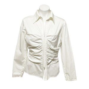 Kay Unger Size 14 White Front Zip Ruch Detail Cotton Lightweight Jacket