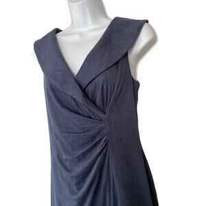 Kay Unger Surplice Faux Wrap Suede Ruched Dress Sleeveless Shawl Collar