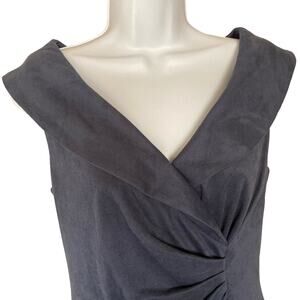 Kay Unger Surplice Faux Wrap Suede Ruched Dress Sleeveless Shawl Collar Size 6