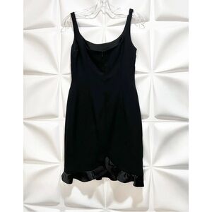 Kay Unger Sz 4 Black Satin Ruffled Cropped Jacket Sheath Dress Suit Set RARE!