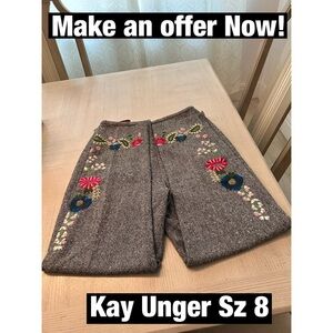 Kay Unger Sz 8 Embroidered Beaded Lined Pants. Wool blend. Magnificent!