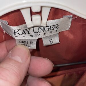 This womens peach silk Kay Unger New York 2 piece skirt suit is basically new! No tags so calling it used.