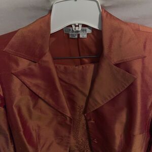 Kay Unger Women’s 2 Piece Suit Size 6 Peach Orange Silk Jacket Skirt Business