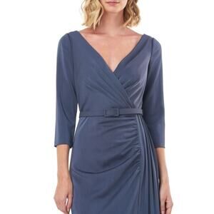 Kay Unger Women's Capri 3/4 Sleeve V-Neck Gown in Slate Blue Size 12 $209