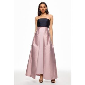 - Strapless structured taffeta with colorblock contrast