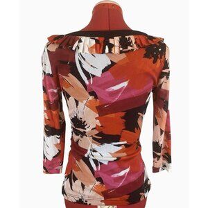 Kay Unger Y2K Medium Cinched Ruched Waist Multicolor Abstract Print Ruffled Top