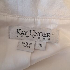 Kay Unger brown , champagne silk dress with floral button accent size 10
