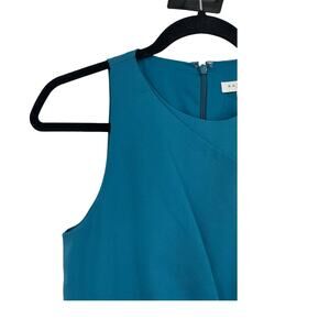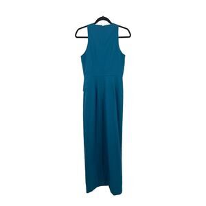 style: 5517469, color: baltic blue, fully lined, floor length dress, stretch crepe, sleeveless, jewel neck holder, draped bodice, column slit gown