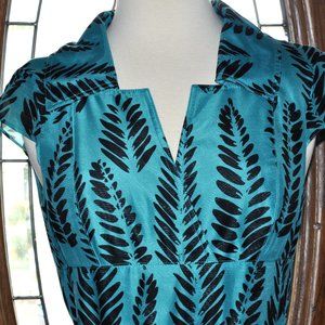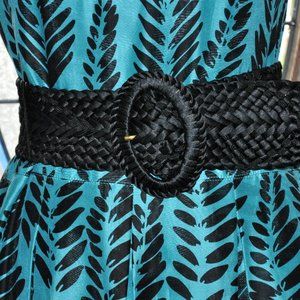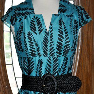 Kay Unger of New York Teal & Black Silk Dress With Black Belt