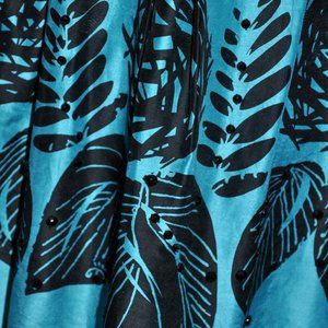 This is a stunning Kay Unger of New York teal and black silk dress with a wide black belt. The colors are gorgeous and the dress has cap sleeves with a zipper in the back that glides easily. Under the dress is a layer of tulle that gives added fullness to the dress and the silk fabric is super soft & luxurious!