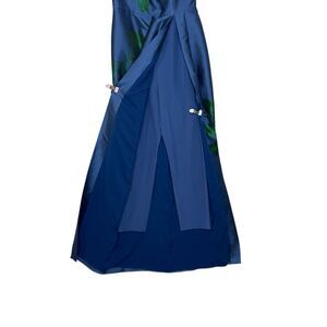 Kay Unger Michelle Blue Floral Jacquard Walk Through Jumpsuit | Size 6