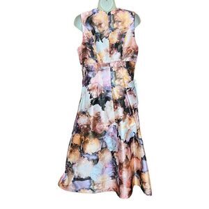 Kay Unger Lani Midi Dress in Metallic Organza Pink Floral NWT Size 8
