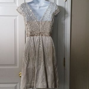 Kay Unger New York crochet sequin overlay khaki mini classy dress