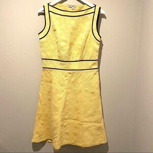 Kay Unger New York Yellow circle texture sleeveless black trim fit and flare size 10