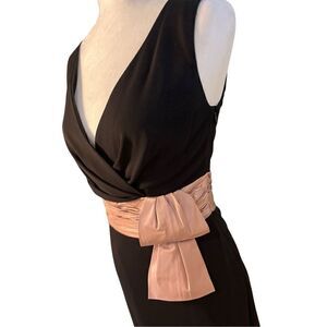 Beautiful Kay Unger cocktail dress. Black with silk pale pink sash at waistline. Side zipper. Classy!