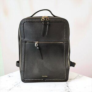 Calpak “Kaya” Laptop Backpack – Black Faux Leather / Vegan, Woven Detail, Compact 15" Bag