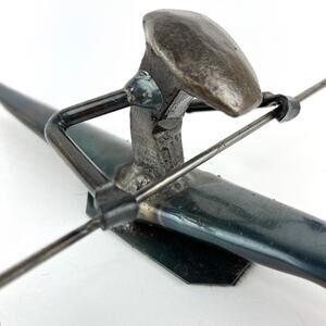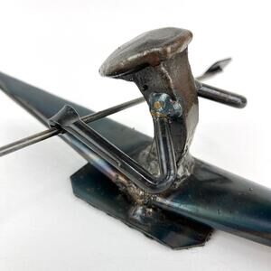 This interesting piece is hand made in Pennsylvania by Roland Metal Art Co. , a family run business. It measures 12" long and approximately 3.5" high. This would look great on the desk of your favorite kayaker.